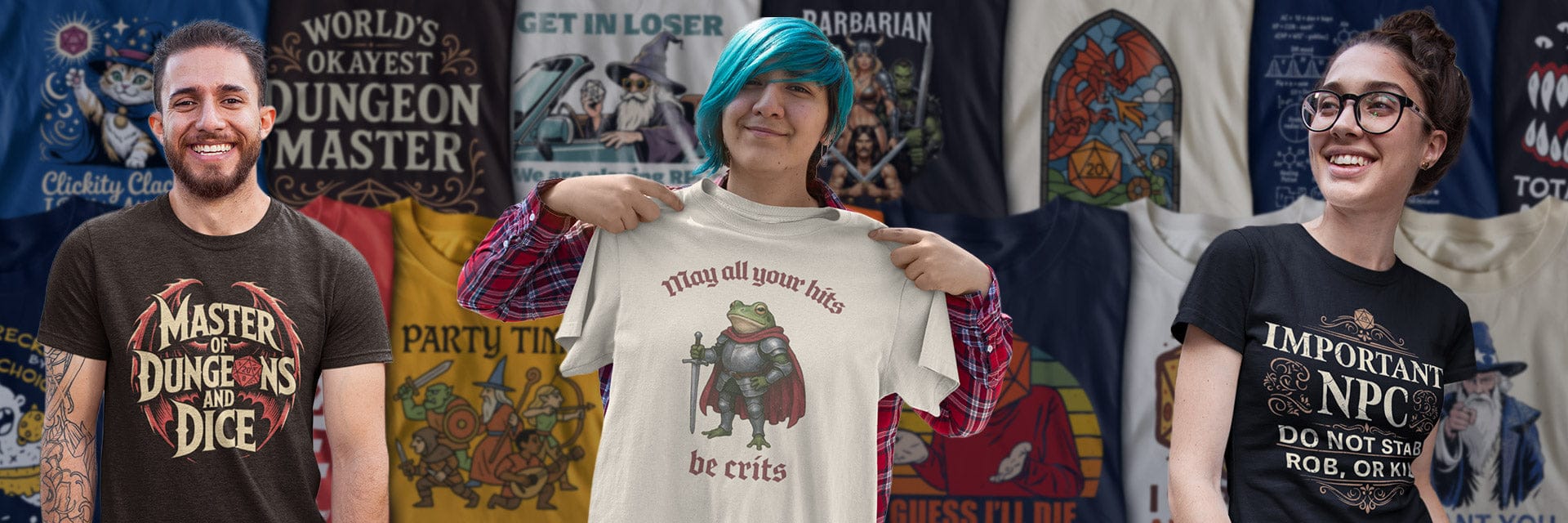 Our shirts are made with soft ring-spun cotton and cotton blends. The high stitch density gives a smooth surface that’s perfect for printing—and super comfy to wear. Whether you’re rolling dice at the table, lounging at home, or crit-failing your stealth check at the local game store, these tees have you covered.